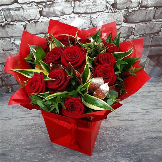 A joyful burst of festive colour arranged with vibrant reds, rich greens and seasonal textures for a warm Christmas feel. Designed using fresh flowers and a natural style, perfect for sending festive cheer.
